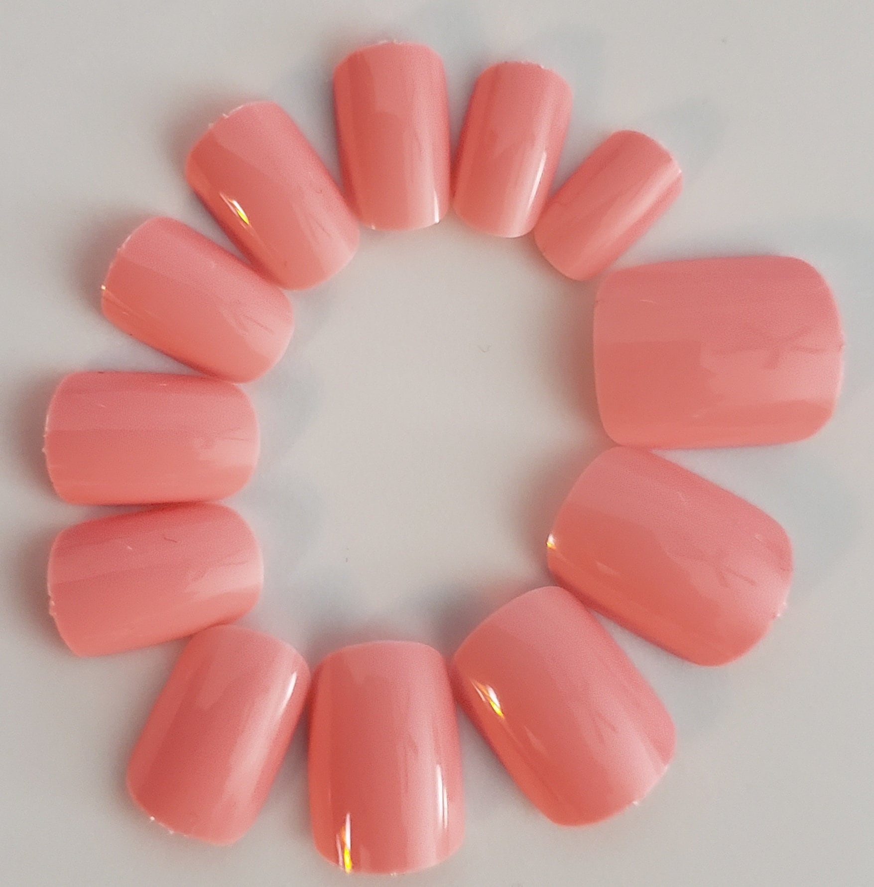 Gel Polish Finish Salmon Color Short Round Press On Nail Tips Etsy
